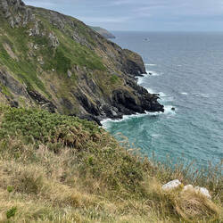Von Hartland aus nehme ich den Bus und gehe die Küste runter über einen Umstieg in Bude nach Tintagel. Das ist ein ziemlich touristischer kleiner Ort, wo es überall um die Arthus-Sage (in UK KingMeer informatie