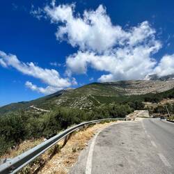Schon kurz nach dem Start in Orikum auf Meereshöhe merkte ich, dass heute ein strenger Tag wird. Es ging stetig bergauf (immer über 10%) und hörte und hörte nicht auf. Da ich wiedermal das Frühstück verpasste, gabs halt Powerriegel - welche ich auch dringend brauchte. Der Weg führte mich durch den Nationalpark Llogara bis ganz hinauf zum Berggipfel auf über 1000 Höhenmeter. Die Aussicht und die danach folgende Abfahrt war dafür grandios (siehe Video🤪) und liess den Kampf beinahe vergessen.