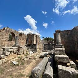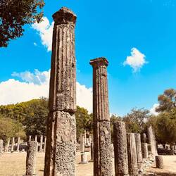 Nach 1.5 Monaten waren heute meine Beine das erste Mal so richtig leer. Vielleicht lag es am späten Start in den Tag, an den über 40 Grad auf dem Navi oder daran, dass die Strasse neu geteert wurde und es von oben wie auch unten nur so bräglete.🥵 Ein Zwischenstopp beim antiken Olympia war dabei genau das Richtige - bitzli alte Steinhaufen und Skulpturen angucken und dabei neue Energie tanken.