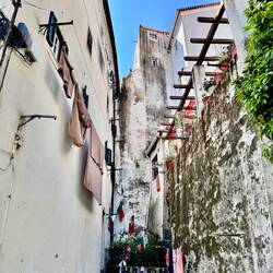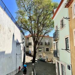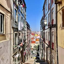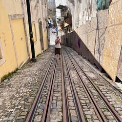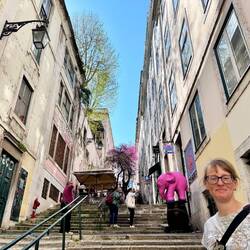 Nach einem Kaltgetränk am Aussichtspunkt da Graca mit fantastischem Blick über die Stadt und die Burg bis hin zum Tejo führte unser Weg über viele Stufen wieder bergab.