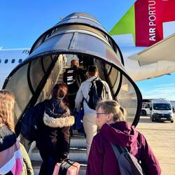 Der Tag begann heute bereits kurz nach drei Uhr, da uns der Bus um 4:00 Uhr vom Moxy Hotel zum Berliner Flughafen brachte.