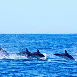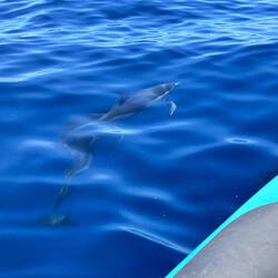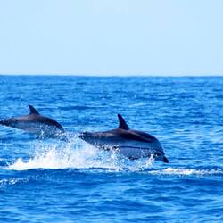 Und dann gab es noch jede Menge Delfine zu sehen, und zwar genau zwei Arten - Gemeine Delfine (wie du und ich) sowie Streifen-Delfine.