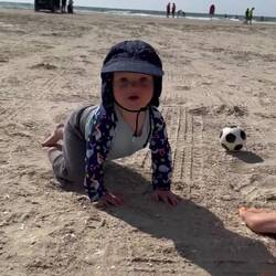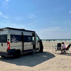 ReisendeEcht cool 😎 mittendrin am Strand mit eurem Camper. Unglaublich wie Milo jetzt schnell krabbeln kann 😊und super mit dem Ball nach vorne . 😘😘😘
