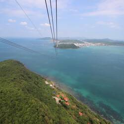 Zum Schluss ging es rein in die Aerial Way, nicht nur irgendeine, sondern mit 8 Kilometern die längste Seilbahn der Welt. Und der Ausblick war völlig spektakulär, da wir gefühlt über das Wasser geflogen sind.