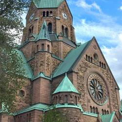 Certo, l'esterno merita molto di più. Dopotutto troneggia sul quartiere, con il suo tetto a punta, verde, molto comune in Scandinavia.Read more