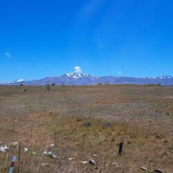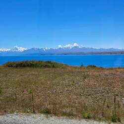 Ci avviciniamo alle montagne e si comincia a vedere l'enorme massiccio del monte Cook, non altissimo per standard alpini ma molto espanso.