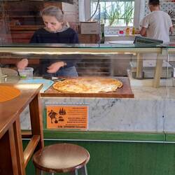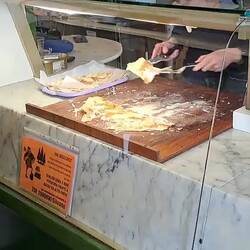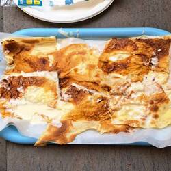 TravelerFocaccia di Recco, pà...è quella che vedi preparare in alcune foto. Come descriverla? Due strati di pasta di seta con perle di robbiola inserite al centro. Rende l'idea?
