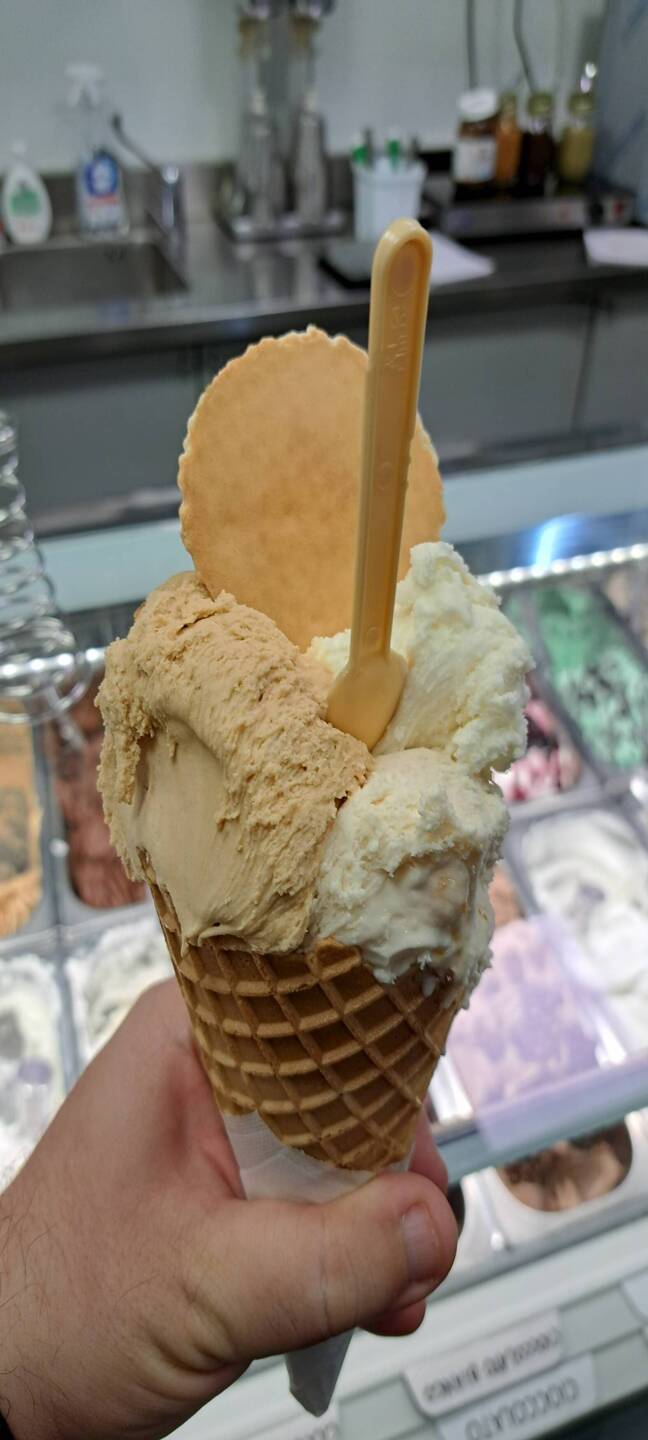 Fichi e noci, mandorla e arancia, caramello salato, cioccolato bianco (5.50€).