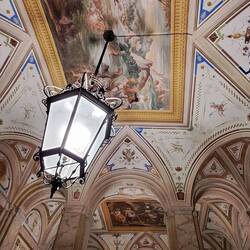 Chiuso dato che è appartamento privato, presenta un atrio affrescato che da mostra di se anche da fuori.