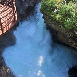 Puoi arrivare alla cascatella passando per una struttura metallica sospesa nella boscaglia. Arrivi e hai un arcobaleno che si sviluppa dabassoRead more