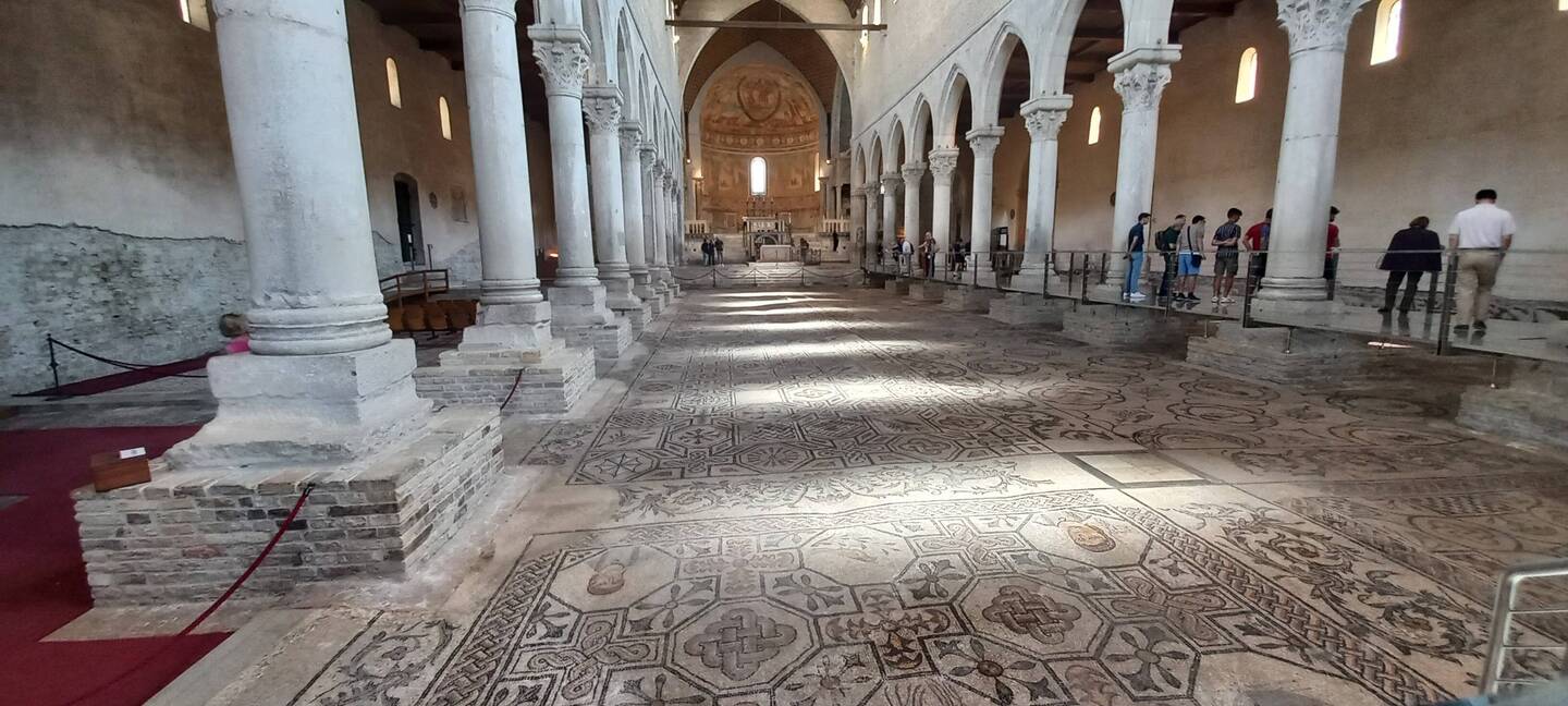 ...la parte cardine della chiesa basilica è il suo pavimento mosaicato, con la scena di pesca che non si capisce realmente se è reale o metaforica. Vai a sapere...