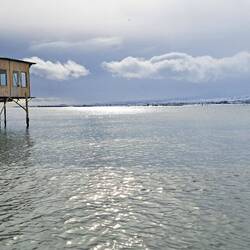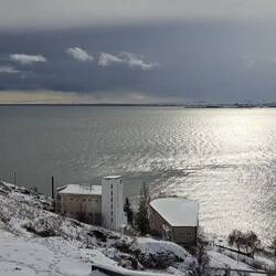 Siamo su uno dei laghi in altura più grandi del mondo, ad oltre 2000 metri, con un bel vento a -10°C.