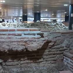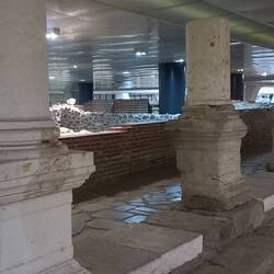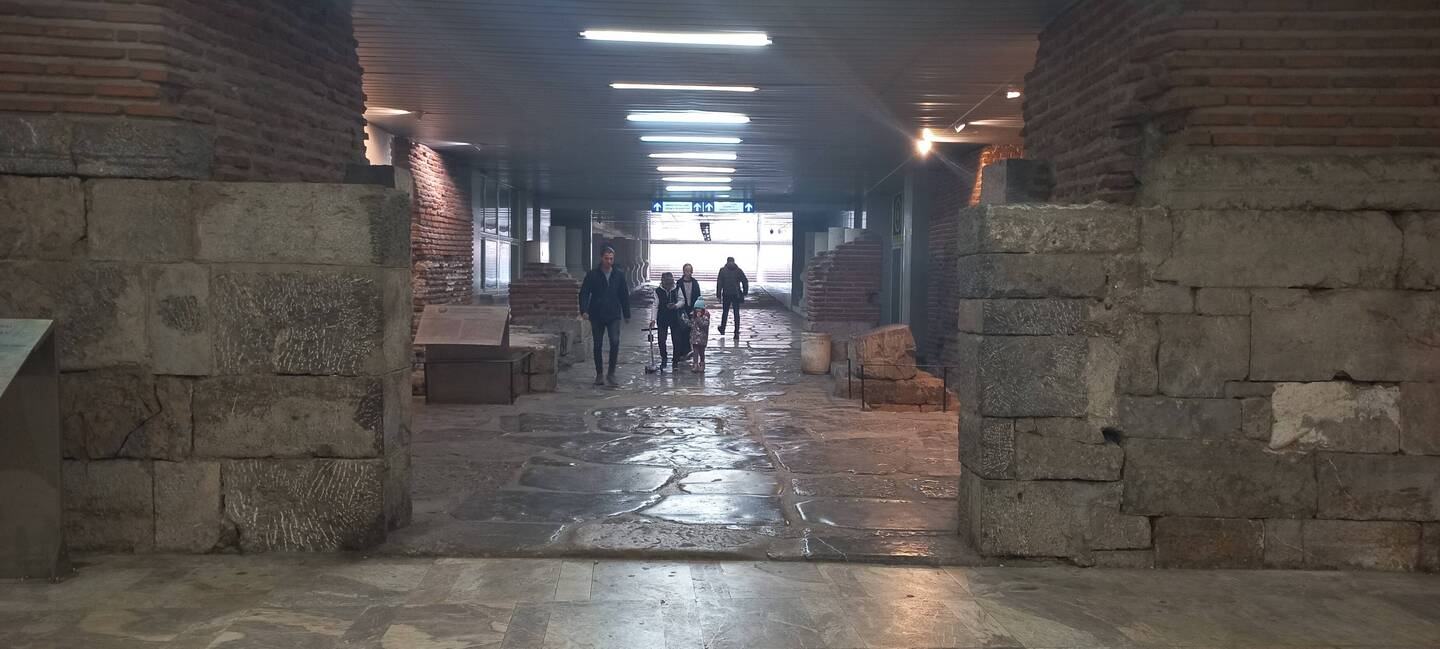 Mi faccio un giretto letteralmente sotto al mio albergo e vedo come hanno risolto il problema della metro in posti in cui trovi ruderi: li fai diventare la stazione stessa! Semplice, no?
