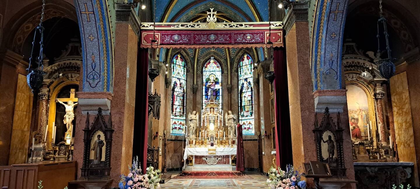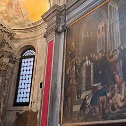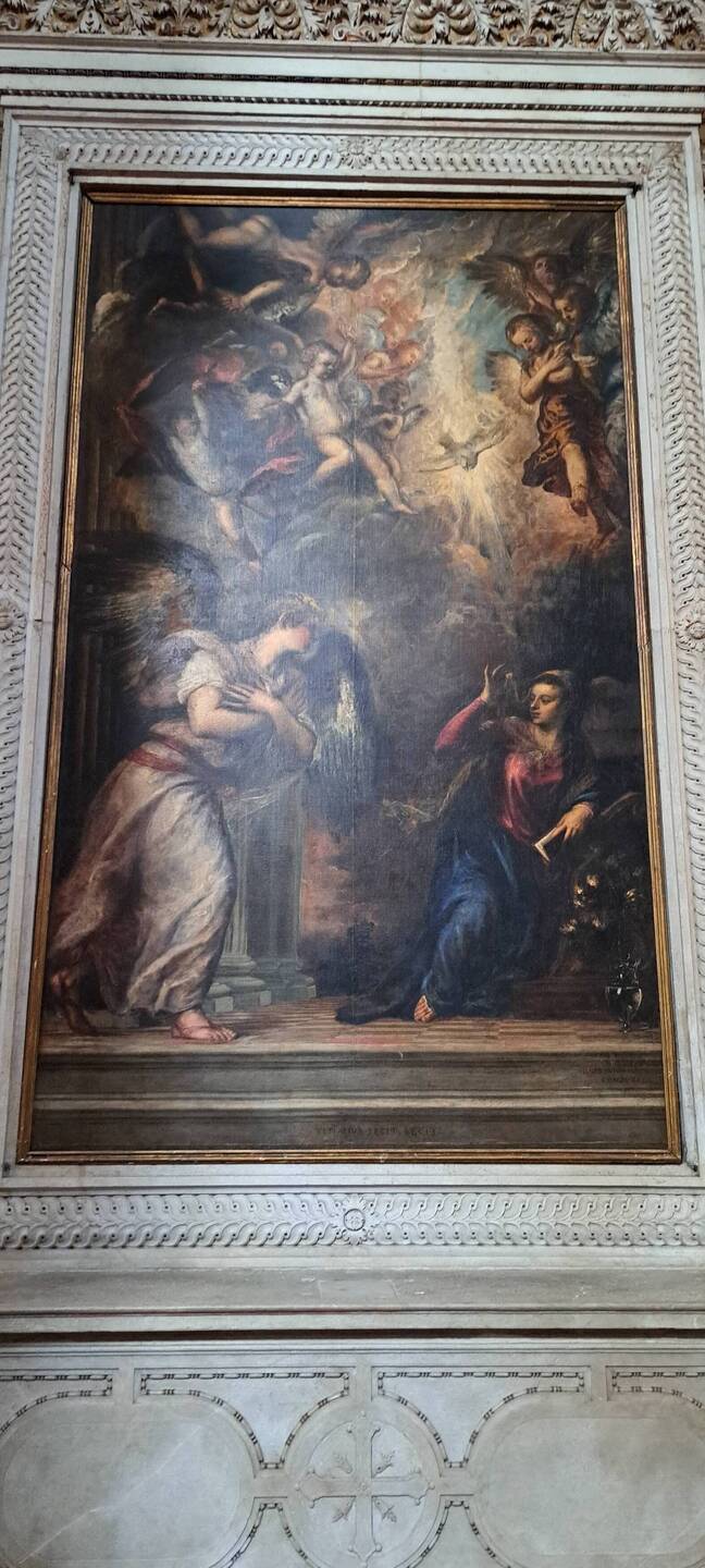 Chiesa barocca con un dipinto di Tiziano Vecellio, un'annunciazione.