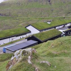 E andiamo a Tórshavn. Prima tappa, la casa nordica, un centro culturale moderno con tetto in erba.