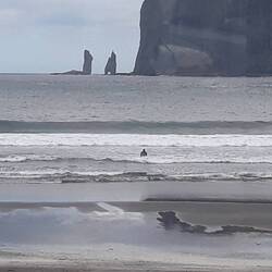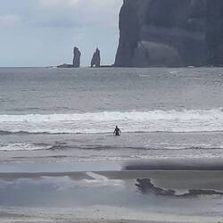 Una bellissima baia dove abbiamo visto gente fare surf, belle ragazze in bikini e signore in giacca a vento.😍