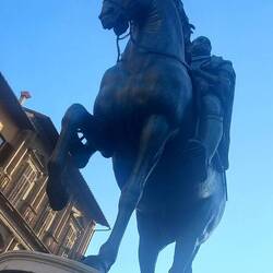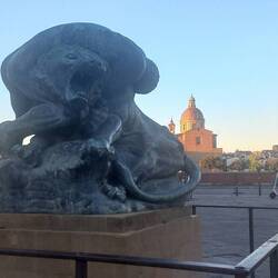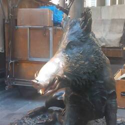 È una fontana posta a lato di un mercato coperto. Porta bene accarezzargli il muso.