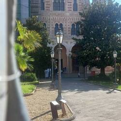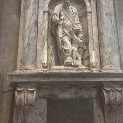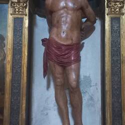 La chiesa in se non è interessante, ma ha una bella torre campanaria ed entrando, si nota questa statua bronzea di un barbone bisognoso che dorme su una panca. Ne avevo vista un'altra uguale a Roma,Read more