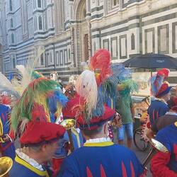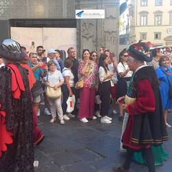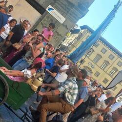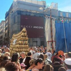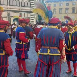 Mentre esco dalla chiesa, sento un discreto rumore e mi trovo in un rifacimento storico: gente vestita con abiti rinascimentali che vanno dietro a un risciò che trasporta una ragazza e vino, tantoRead more