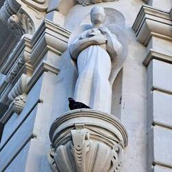 Mi fermo ammirando l'art nouveau della facciata, con la dama della porta che piange fasci di luce. Abbasso lo sguardo e vedo il numero civico...è il mio Czytaj więcej
