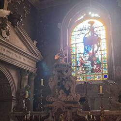 Nome evidentemente romano per un santo che non conoscevo, ma dopotutto all'estero mi capita sempre più spesso! Chiesa gotica, cupa, che ti deve infondere il timor di Dio...ci Czytaj więcej