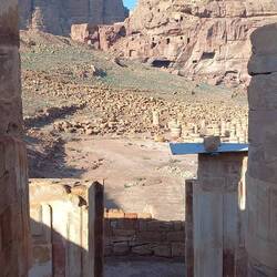 Questo è proprio tipico romano. Una via principale costegiata da colonne dove un mercante andava ad imbattersi entrando dalla porta a ovest. Sopra, a sud, ci sono dei templi. Per arrivarci deviRead more