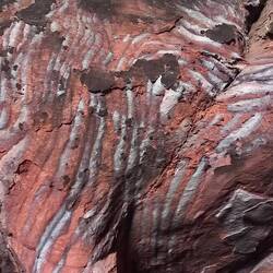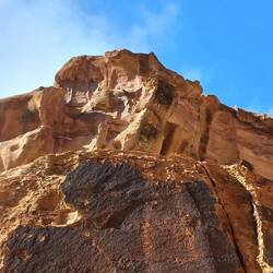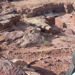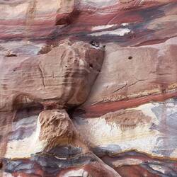 La pietra striata multicolore del deserto ti confonde, qui. Non capisci dove finisca la mano dell'uomo e dove sia stato il ventoRead more