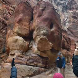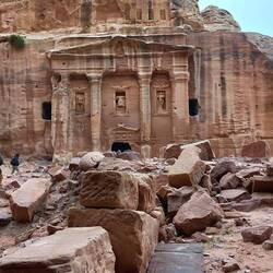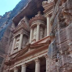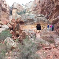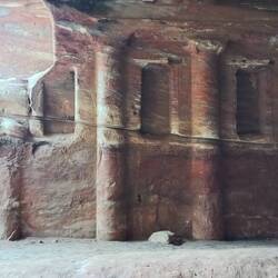 Il sentiero scende abbastanza dolcemente con solo brevi tratti un poco più ripidi. Si raggiungere il fondo del Wadi Farasa dopo un quarto d'ora e il primo monumento che incontro scolpito nellaRead more