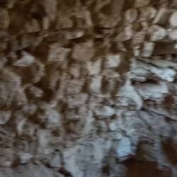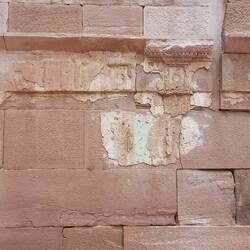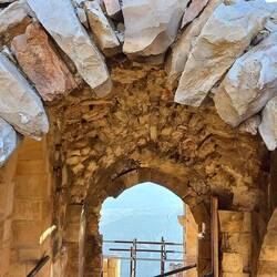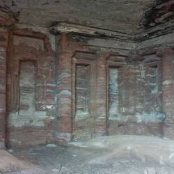 ...ed è qui che sbuchi alla fine del trail. Occasione buona per vedere da vicino l'edificio che era tutt'altro che liscio. A terra è pieno di residui ma qualcosa, poco, è rimasto sulla parete.