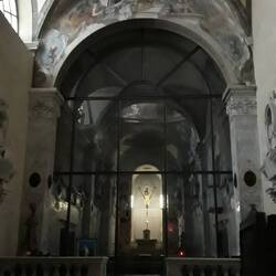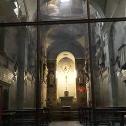 Visita quasi mistica a questa chiesa enorme, nei Carruggi del porto. Entro che stanno per chiudere e il prete-custode mi lascia fare un giro, nel buio.