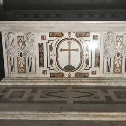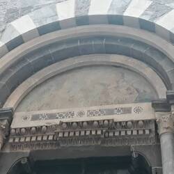 Vedo quel tipico zebrato in pietra, scorto in diverse chiese medievali, in varie zone d'Italia.Read more