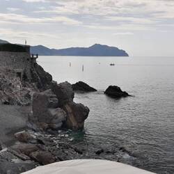 Arrivato a Nervi, comincio la passeggiata sul mare. Un poco malmessa, ad essere onesti.