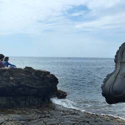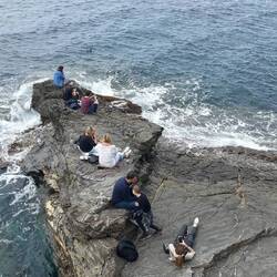 Mi vado infine a spiaggiare, al sole, sugli scogli.
