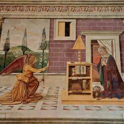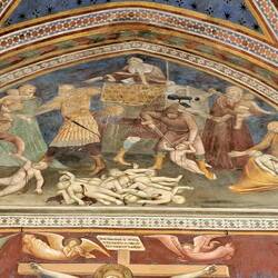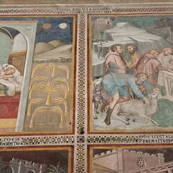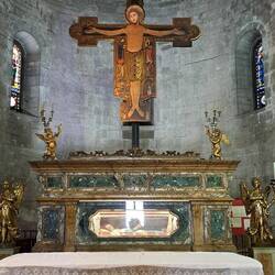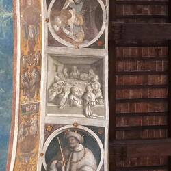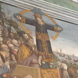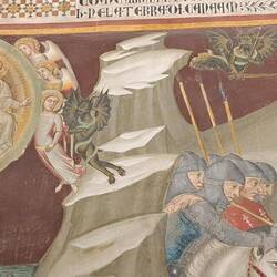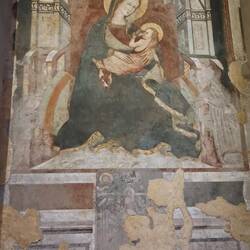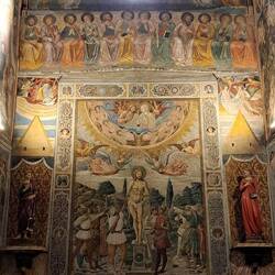 Internamente un ciclo pittorico bassomedievale. Da una parte il Nuovo Testamento, dall'altra l'Antico.もっと詳しく