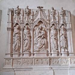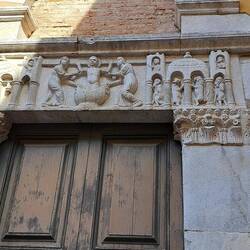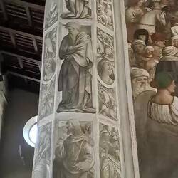La visita si paga (3€). All'interno un Tintoretto (come ci sarà arrivato qui). Ma prima mi godo l'esterno. Avrò modo a vedere che questo tipo di facciata è molto usato in città.