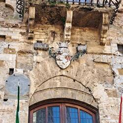 Torre medievale al termine della quale c'è un giardino pensile con dei lecci. Si vedono anche da sotto.