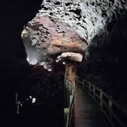Sotto, un po' deludente se si hanno in mente le grotte "calcaree". Se invece pensi che il buco in cui cammini lo ha scavato la lava, cavolo! È impressionante!