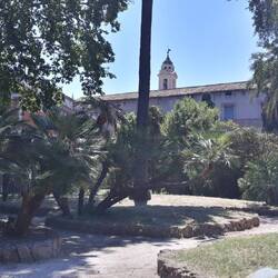 Un pezzo di verde rialzato rispetto alla sede stradale e con una quiete quasi irreale, calcolando dove si trova, a due passi dai fori.