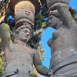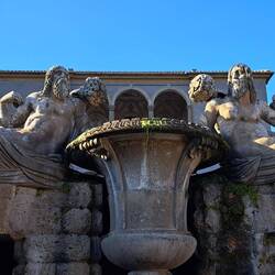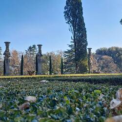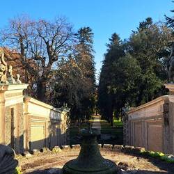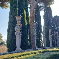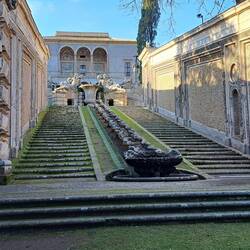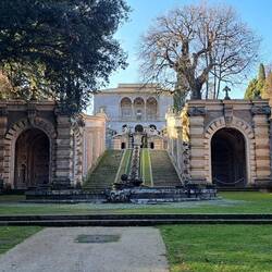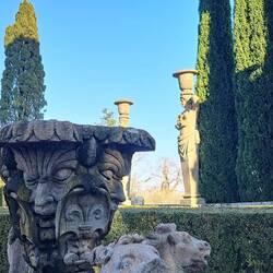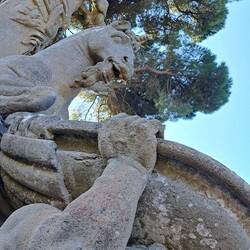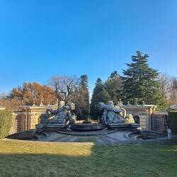 ...e finito il palazzo, ci sarebbe il complesso dei giardini e i loro giochi d'acqua. Ma in realtà, essendo inverno, le fontane son spente. E pure i giardini sono in parte chiusi. Bè,Læs mere
