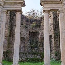I Colonna chiamarono il Bramante per cominciare un giardino enorme nei loro possedimenti. Il progetto non prese però mai piede del tutto e tutto quel che rimane sono questi ruderi, apertiLæs mere