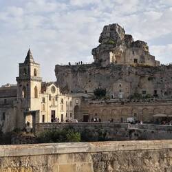 La piazza principale fuori dai sassi. Da qui hai la possibilità di diversi panorami, qualche chiesa rupestre, il municipio...