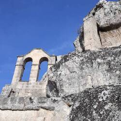 La chiesa è scavata nella roccia, nelle sue "profondità". Per il resto, la pietra è adagiata e scavata.
