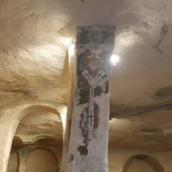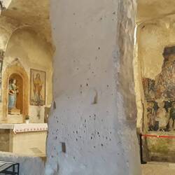 In alcuni casi, come in questo, la "rupestre" è poco più che una camera affrescata alla bene e meglio, usata come deposito o come sacrestia (nel caso specifico, prima opzione).