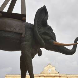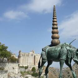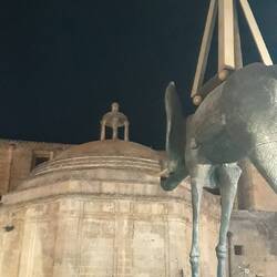 L'elefante di Dalì non può nulla contro il fortunadrago che sorveglia il Palazzo del Governo.