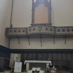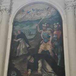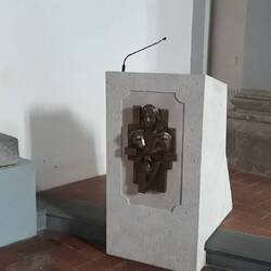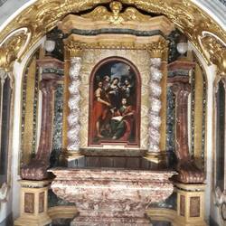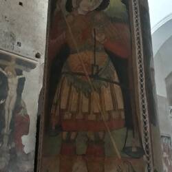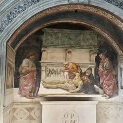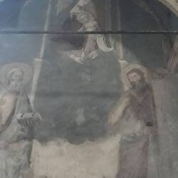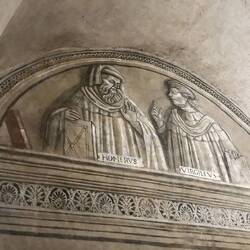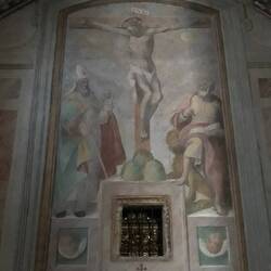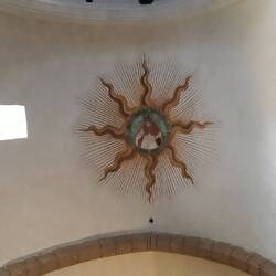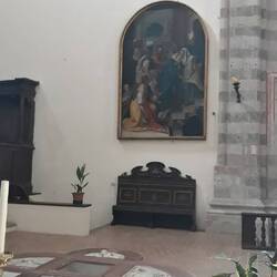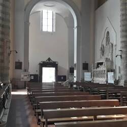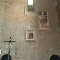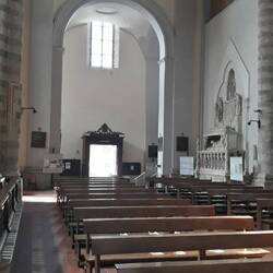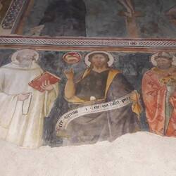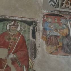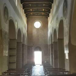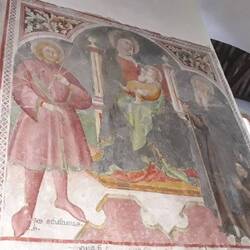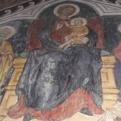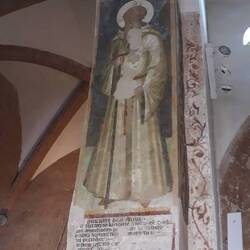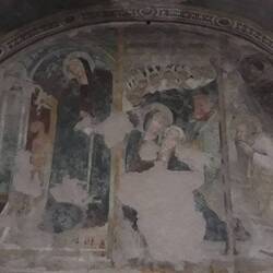 Chiesa romanica in parte affrescata, con un monumento funebre pomposo e appariscente.