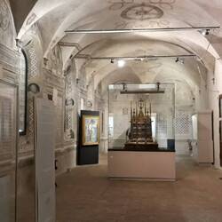 Nei sotterranei (bello!) e in un palazzo limitrofo al Duomo.