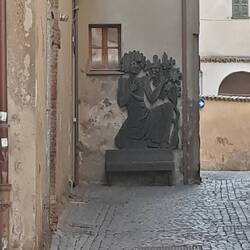 L'atelier del maestro che, tra le altre cose, ha fatto l'attuale portone del Duomo.
