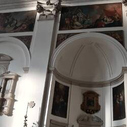 L'oratorio è ormai uno spazio espositivo, riccamente affrescato.