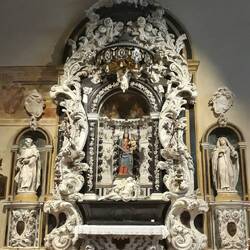 Cattedrale e basilica cattolica risalente al XIII secolo con interni semplici e altare riccamente ornato.