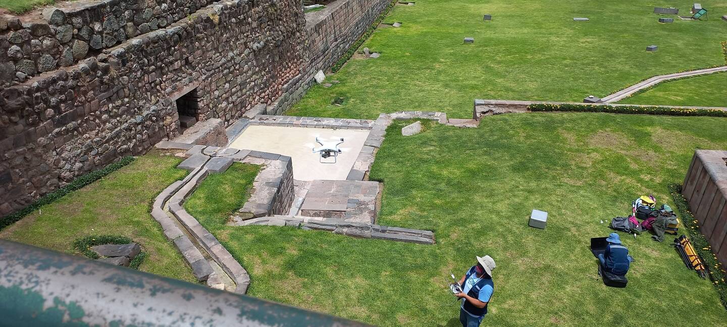 Andando in Avenida del Sol, ripasso davanti al tempio del Sole e vedo un lavoratore con drone: probabilmente un monitoraggio, una scannerizzazione.